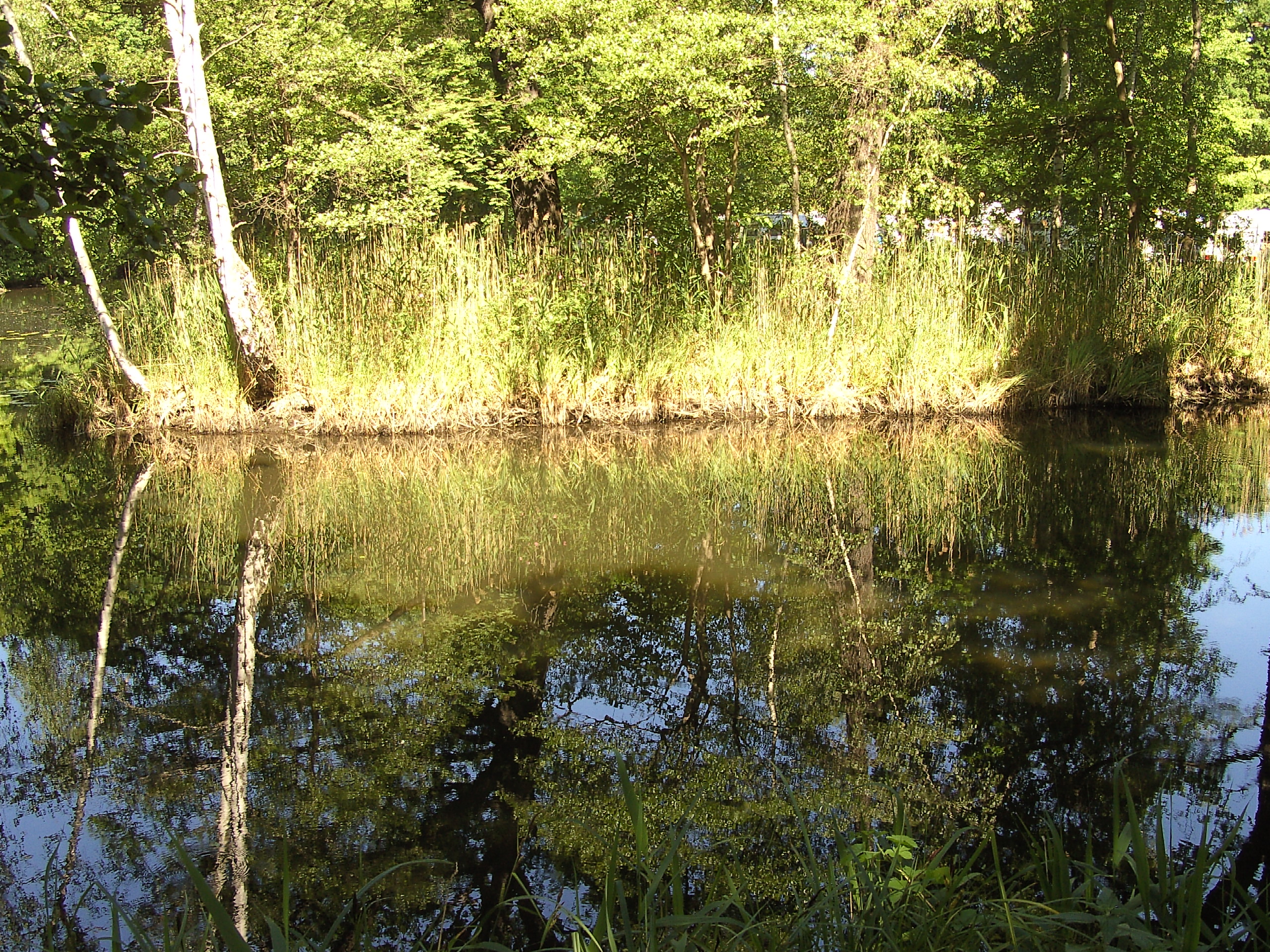 Die Morgensonne schickt ihre vorsichtigen Strahlen durch die Blätter, das Wasser blinkt und blitzt dort, wo die Strahlen sich spiegeln.